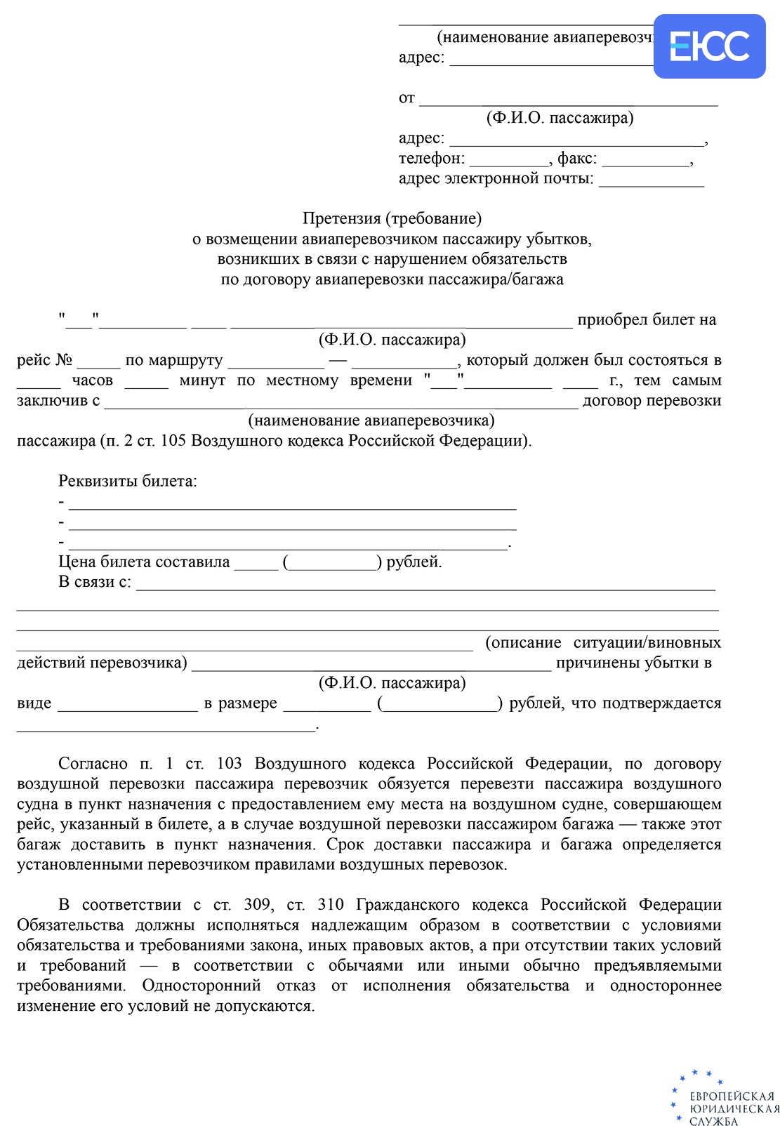 Ниже пример претензии, который вы можете адаптировать под свою ситуацию: