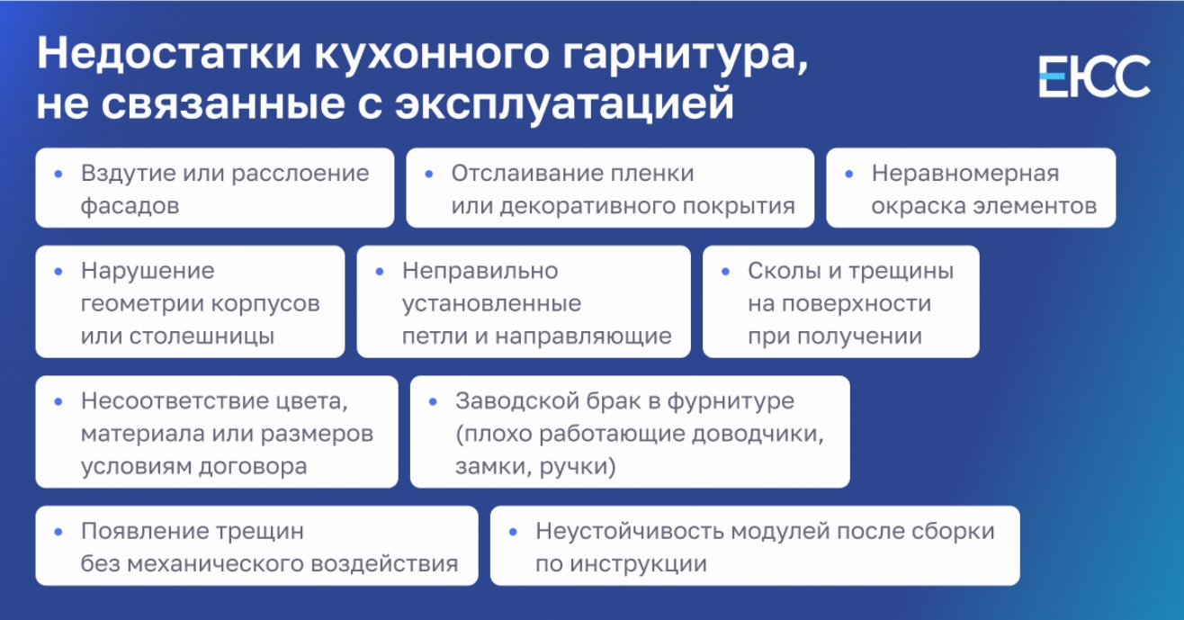 - при обнаружении существенного недостатка кухни покупатель вправе требовать замену или возврат денег;