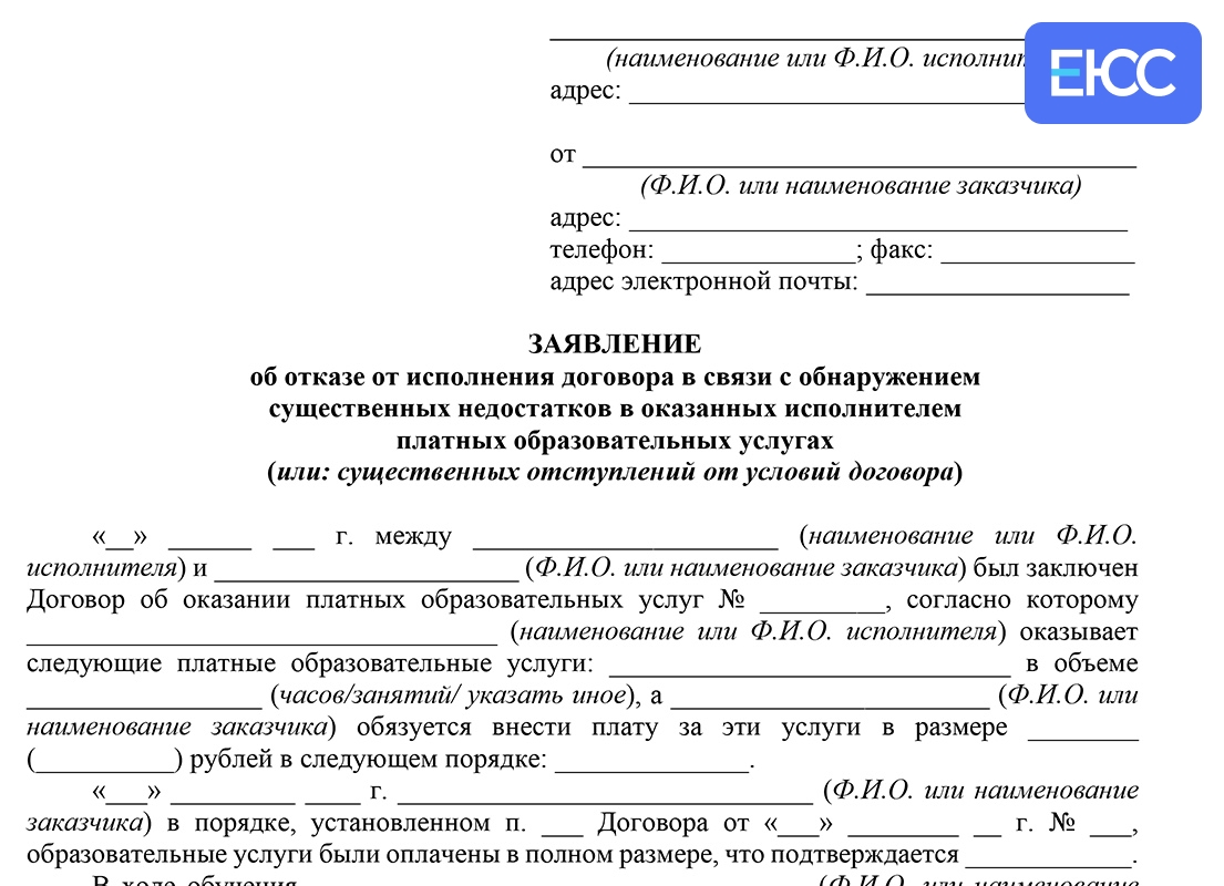 Если вы не знаете, как грамотно сформулировать требования или опасаетесь пропустить важные моменты, мы готовы помочь. Юристы ЕЮС подготовили шаблон претензии, который можно адаптировать под конкретную ситуацию. Мы также сопровождаем процесс возврата — от составления документов до обращения в суд, если в досудебном порядке вопрос не решается.