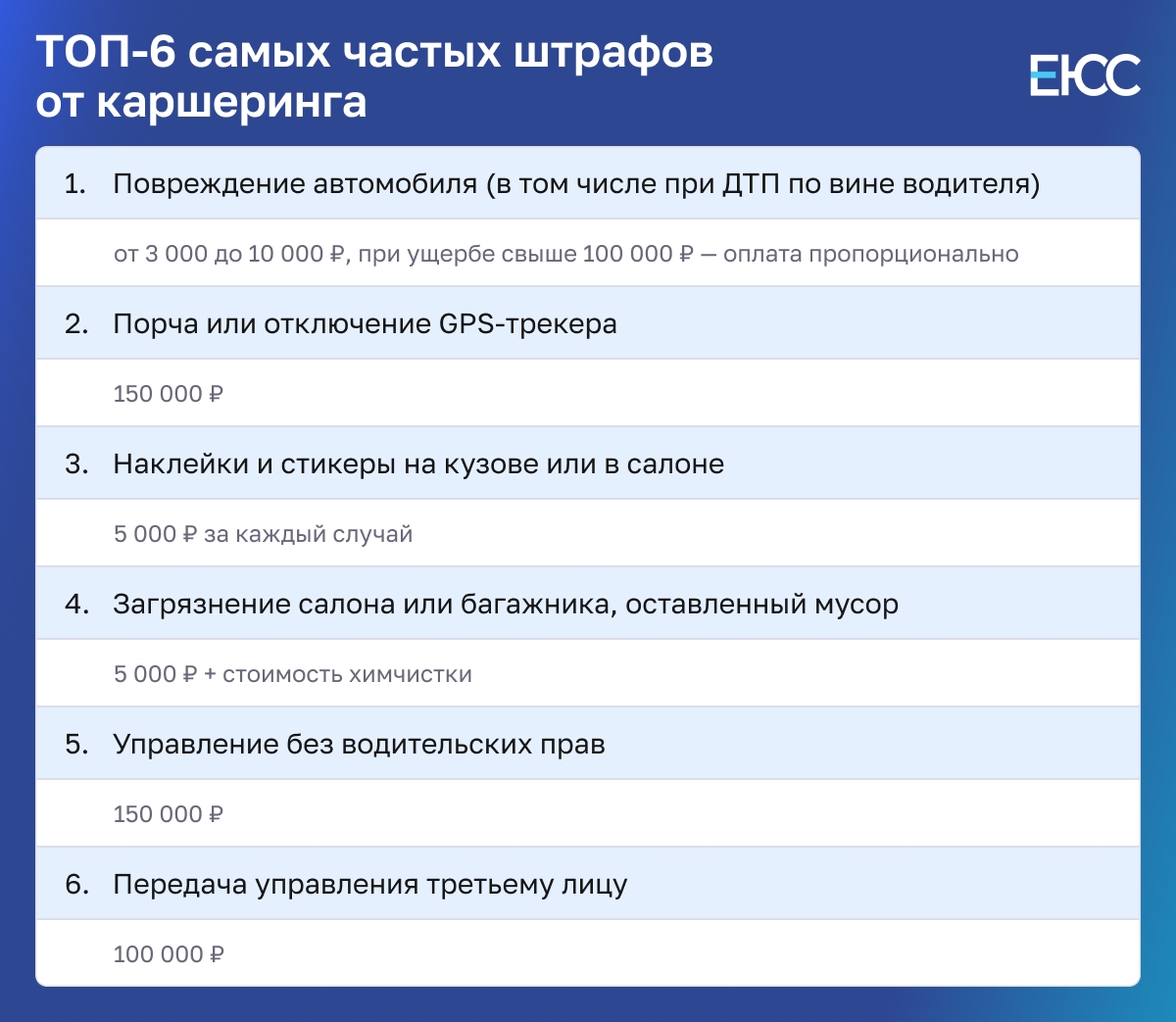 - Договорные штрафы — назначаются самим сервисом за нарушение условий аренды, например, за опасное вождение.